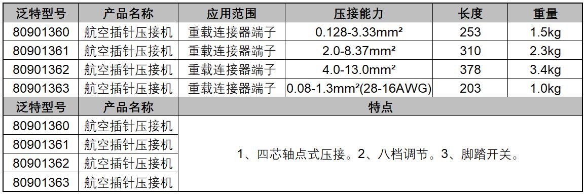 ·四芯轴点式压接。 ·八档调节。 ·脚踏开关。