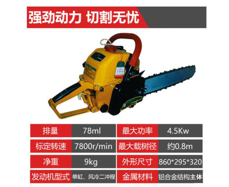 ·便携式小型汽油链锯 ·轻便易转运汽油链锯 ·机构简单汽油链锯 ·简易操作汽油链锯 ·调速简略,并且节能。 ·汽油机结构简略、体积小、惯量小、造价低、修补简略、经用。 ·可以快速启动和快速制动。
