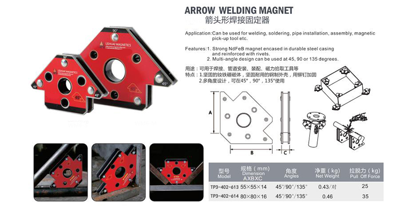 ·坚固的钛铁硼磁体,坚固耐用的钢制外壳,用铆钉加固 ·多角度设计,可在45°,90°,135°使用