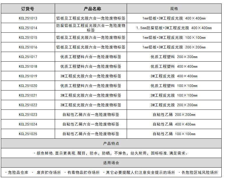 铝板及工程反光膜六合一危险废物标签