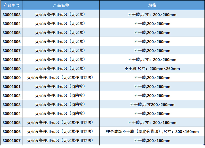·高性能自粘性材料,张贴于消防器材表面,简单易懂的介绍消防器材使用方法;