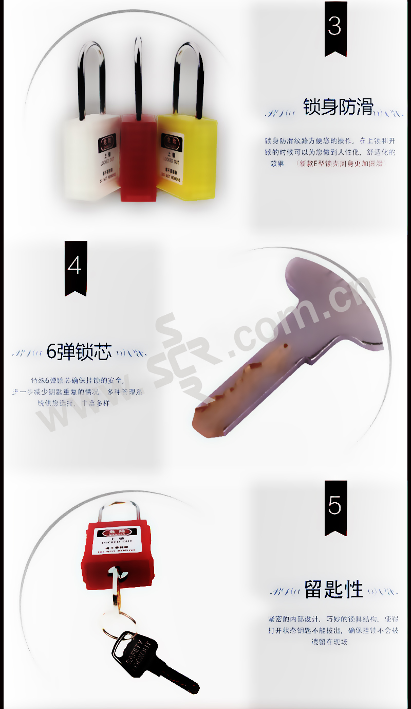 ·留匙性:打开状态钥匙不能被拔出,确保挂锁不被遗留