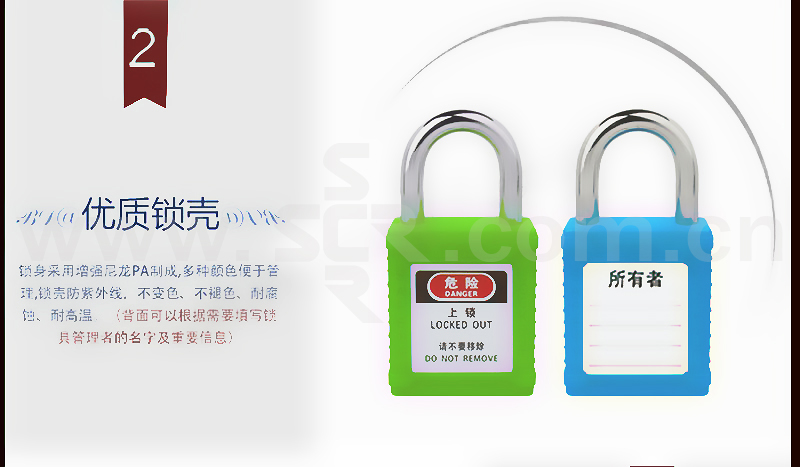 ·锁体由工程塑料尼龙PA制成,防紫外线,耐腐蚀,一体式设计,耐用,抗温差(-57℃~+177℃),抗冲击