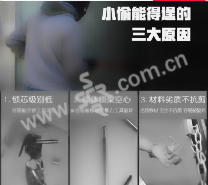·实心精钢锁梁,表面镀铬,经过多道淬火工艺,强度更好硬度高。