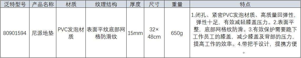 ·闭孔、紧密PVC发泡材质、高质量回弹性,弹性十足,有效减轻膝盖压力。