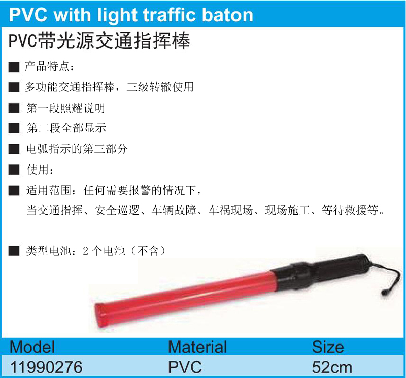 英文名称:  PVC with light traffic baton
