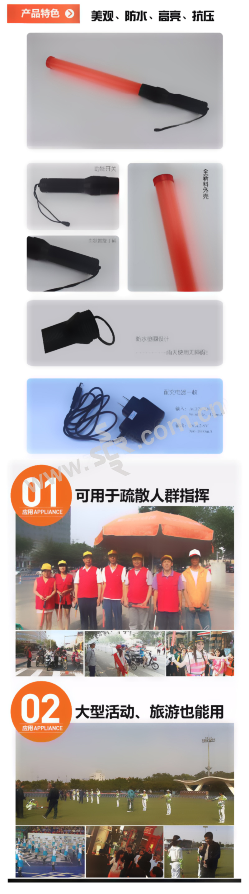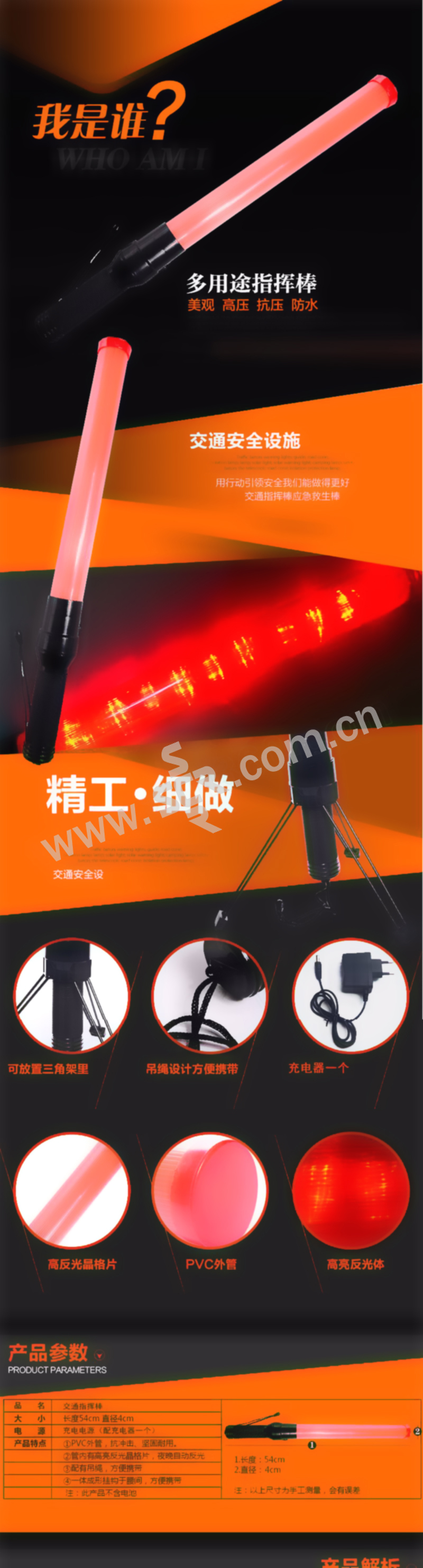 CNMF/谋福 长款交通指挥棒 80722 长54cm φ4cm 红色 充电款 包含充电器 1个
