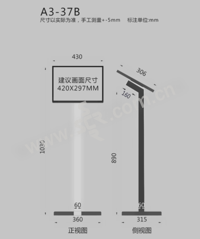 BOZE/柏致 A3指示牌立式导向牌 A3-37B立牌 面板尺寸420*297 430*306*1030 1件