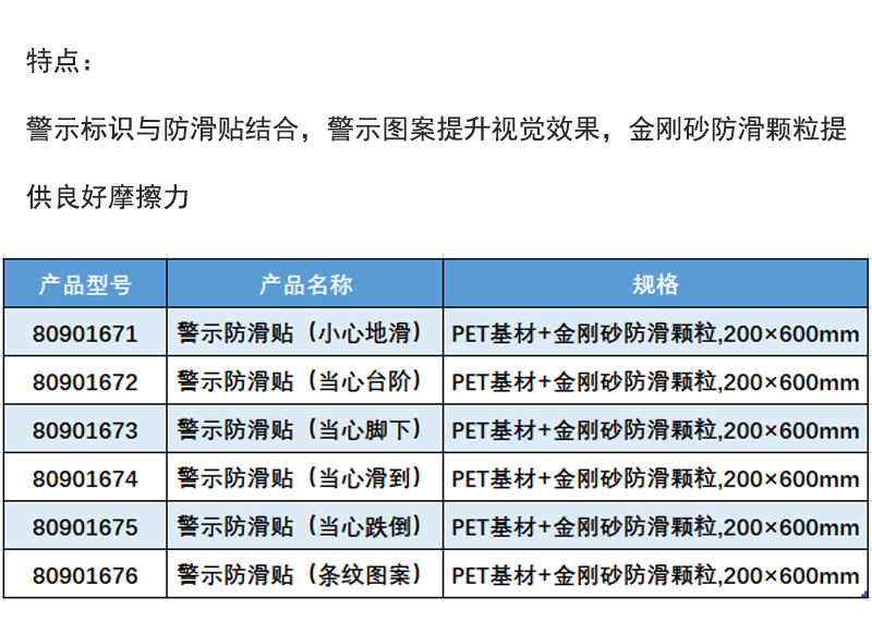 ·警示标识与防滑贴的完美结合,警示图案提升视觉冲击力,金刚砂防滑颗粒提供超强摩擦力; ·能经受高流量踩踏,高品质黏胶张贴不易脱落;
