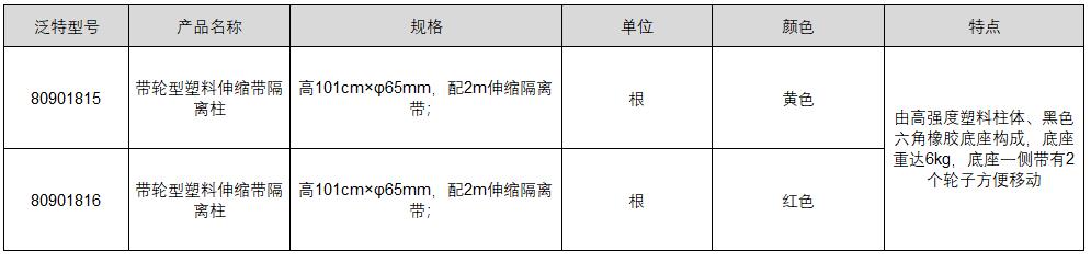 ·由高强度塑料柱体、黑色六角橡胶底座构成,底座重达6kg,底座一侧带有2个轮子方便移动