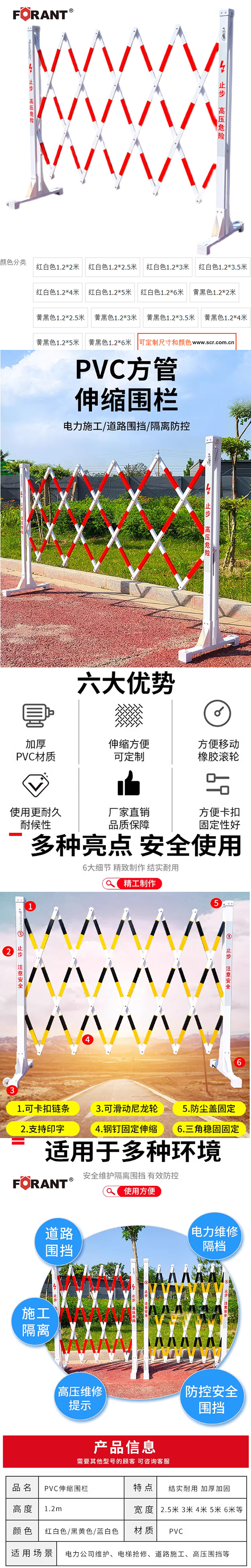 塑料绝缘伸缩围栏电力施工学校儿童安全护栏可移动式隔离收缩围栏