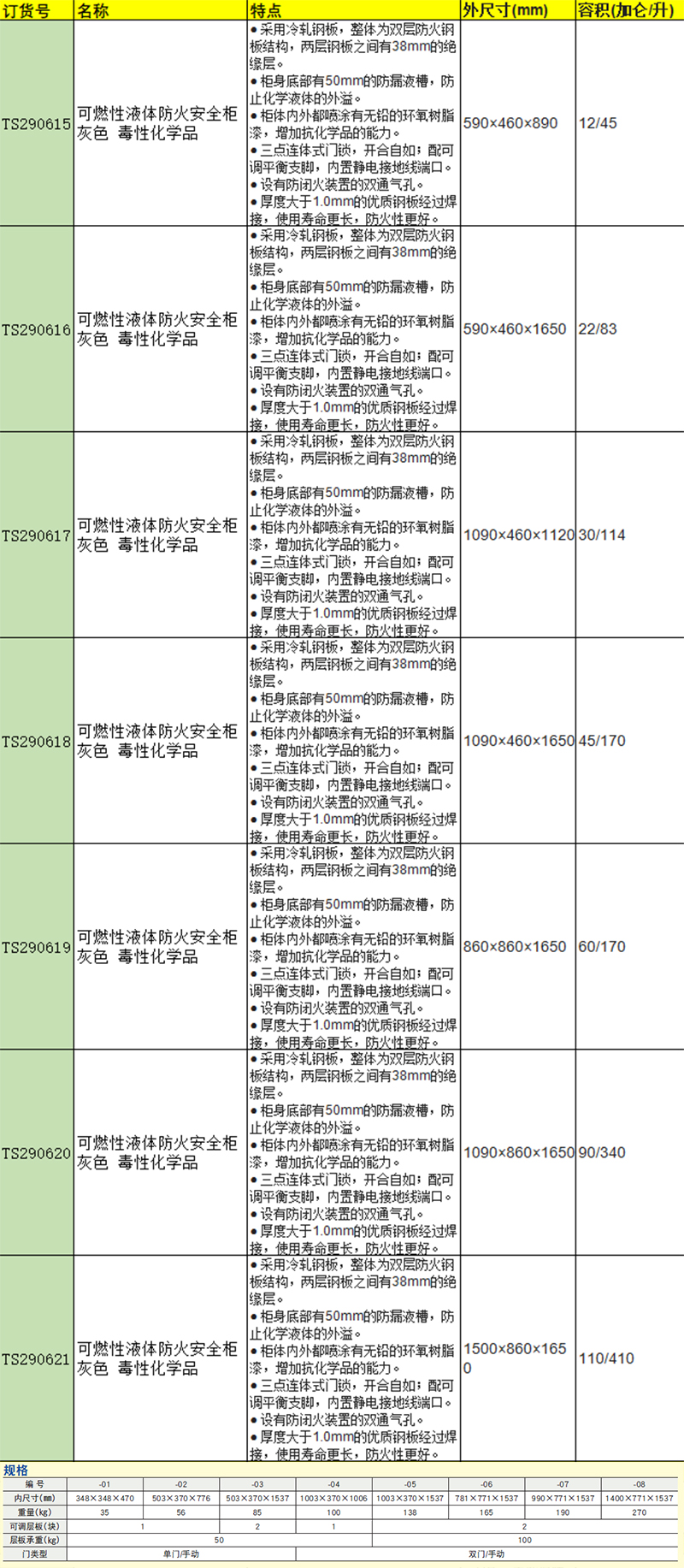 订货号 制造商型号 材质 容积 外尺寸(高×宽×深) 自重 柜门数 闭门方式 可调层板数量 柜门数量和类型 可调节架数量 价格 购物车
