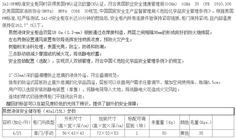 ·左右两侧设置通风装置有效降低挥发性物质浓度,预防火灾产生;树脂粉末涂料处理,表面光亮,防尘,防锈和防潮; ·三点联动锁减少摩擦或机械火花,降低静电积蓄; ·安全挂锁配置〈选配〉,实现双人双锁管理,符合中国《危险化学品安全管理条例》的规定;