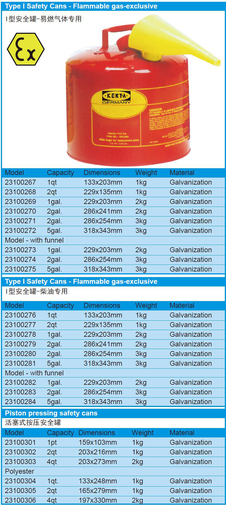 Type I Safety Cans - Flammable gas-exclusive