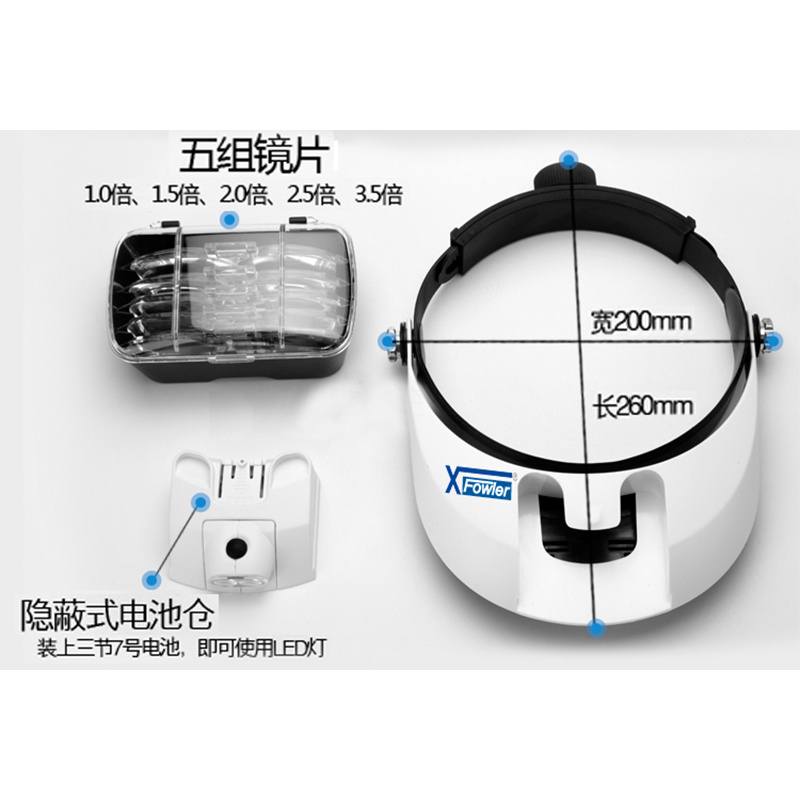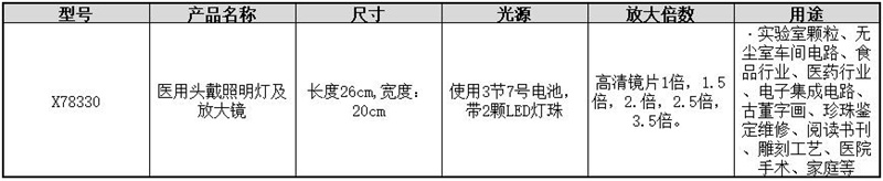 A66902 X78330 长度26cm,宽度:20cm 使用3节7号电池,带2颗LED灯珠 高清镜片1倍,1.5倍,2.倍,2.5倍,3.5倍。 499.90