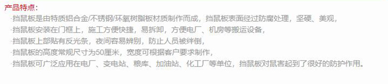 ·挡鼠板的高度常规尺寸为50厘米,宽度可根据客户要求制作,