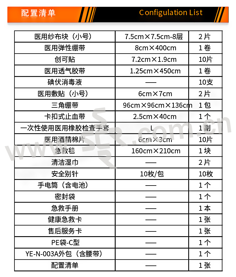 ·野外工作中随身携带,内置清创消毒、止血包扎医疗用品,遇意外状况,可以及时自救互救。