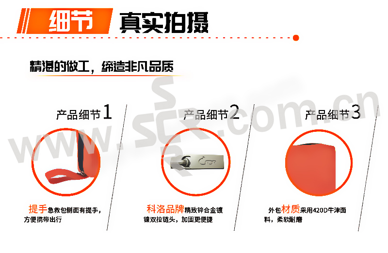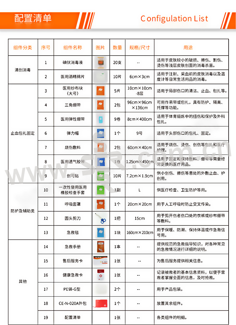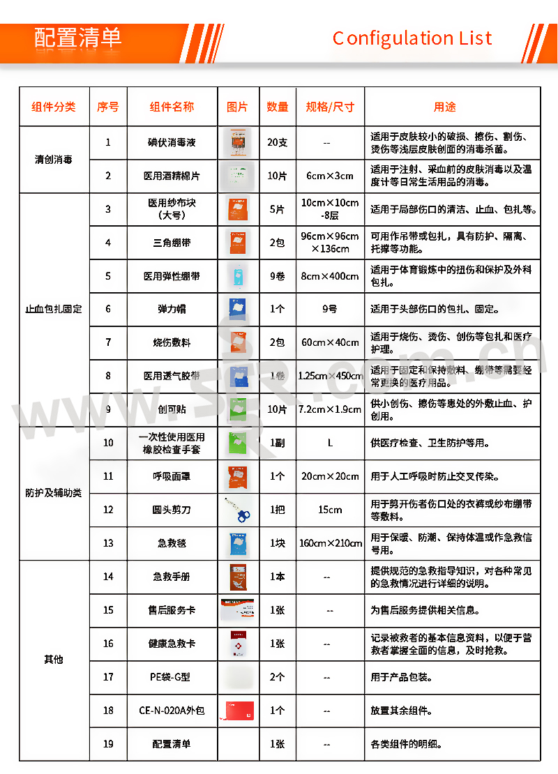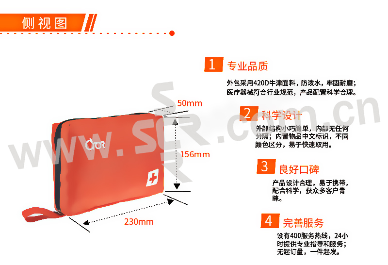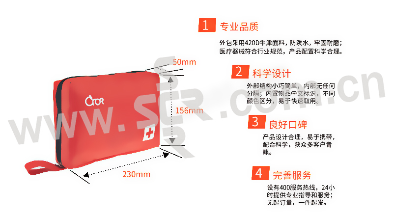 · 借鉴宝马、奔驰等高档进口车的随车医疗包配置,重点满足创伤发生后的止血环节。