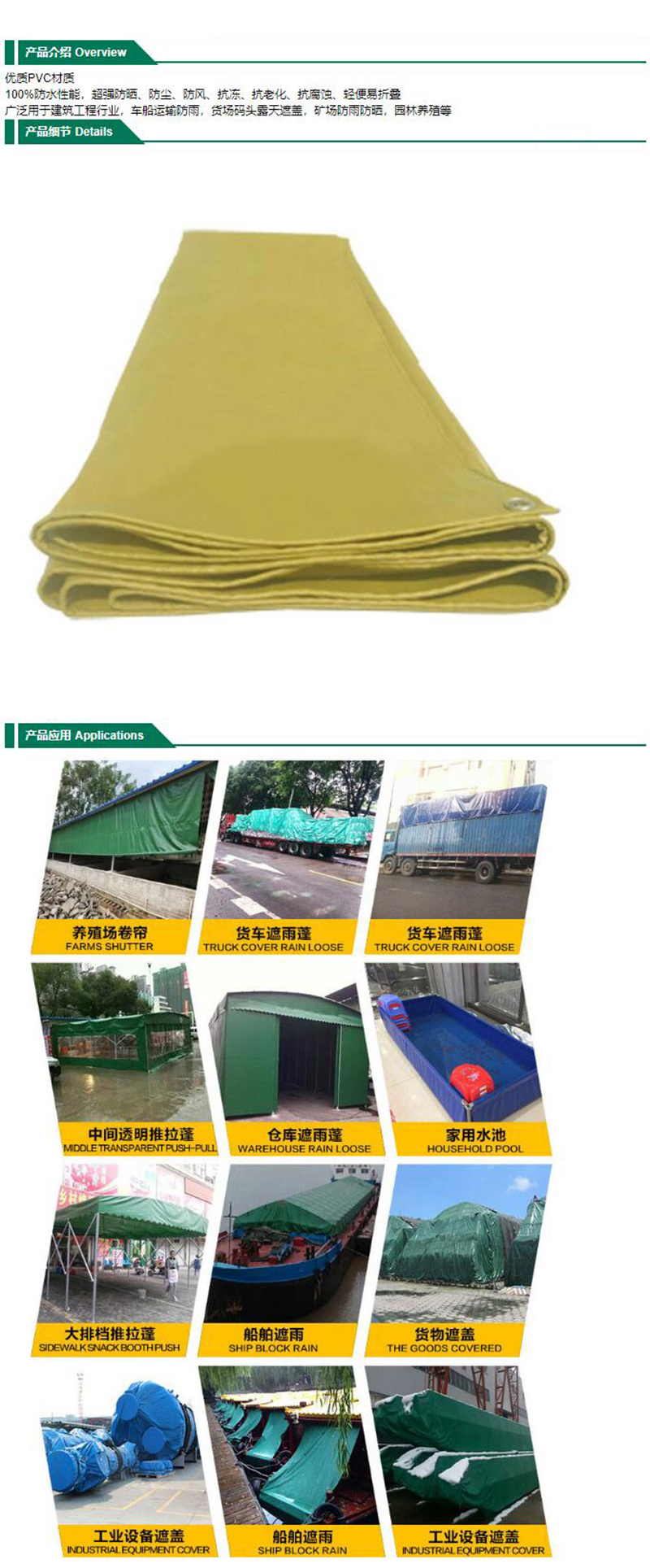 ·100%防水性能,超强防晒、防尘、防风、抗冻、抗老化、抗腐蚀、轻便易折叠