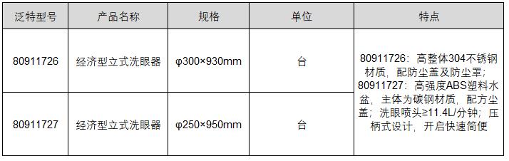 ·高整体304不锈钢材质,配防尘盖及防尘罩;洗眼喷头≥11.4L/分钟;压柄式设计,开启快速简便