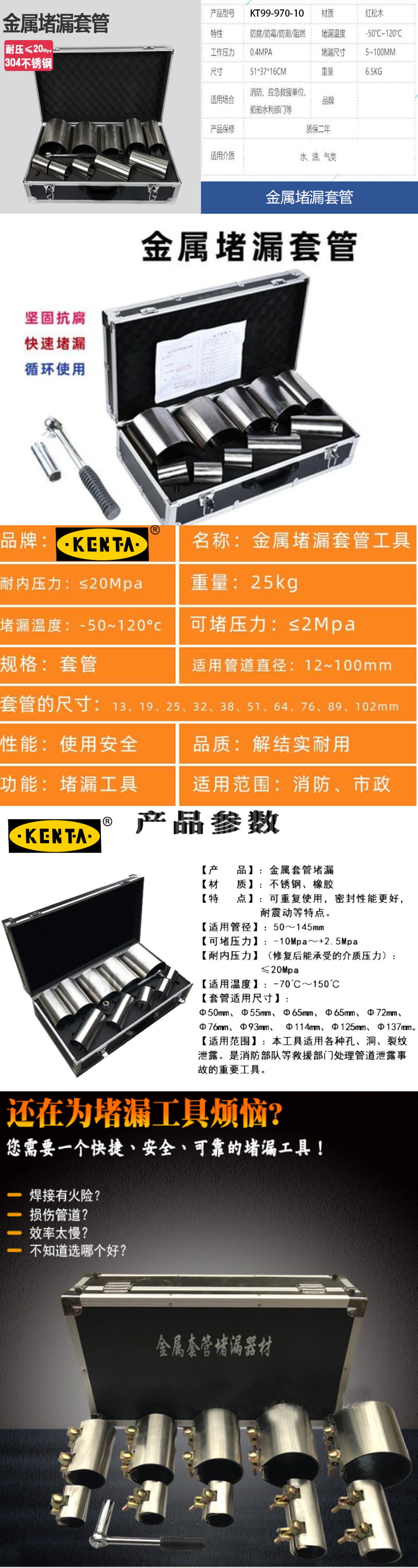 金属堵漏套管 KT99-970-10 堵漏温度-50~-120℃ 1套
