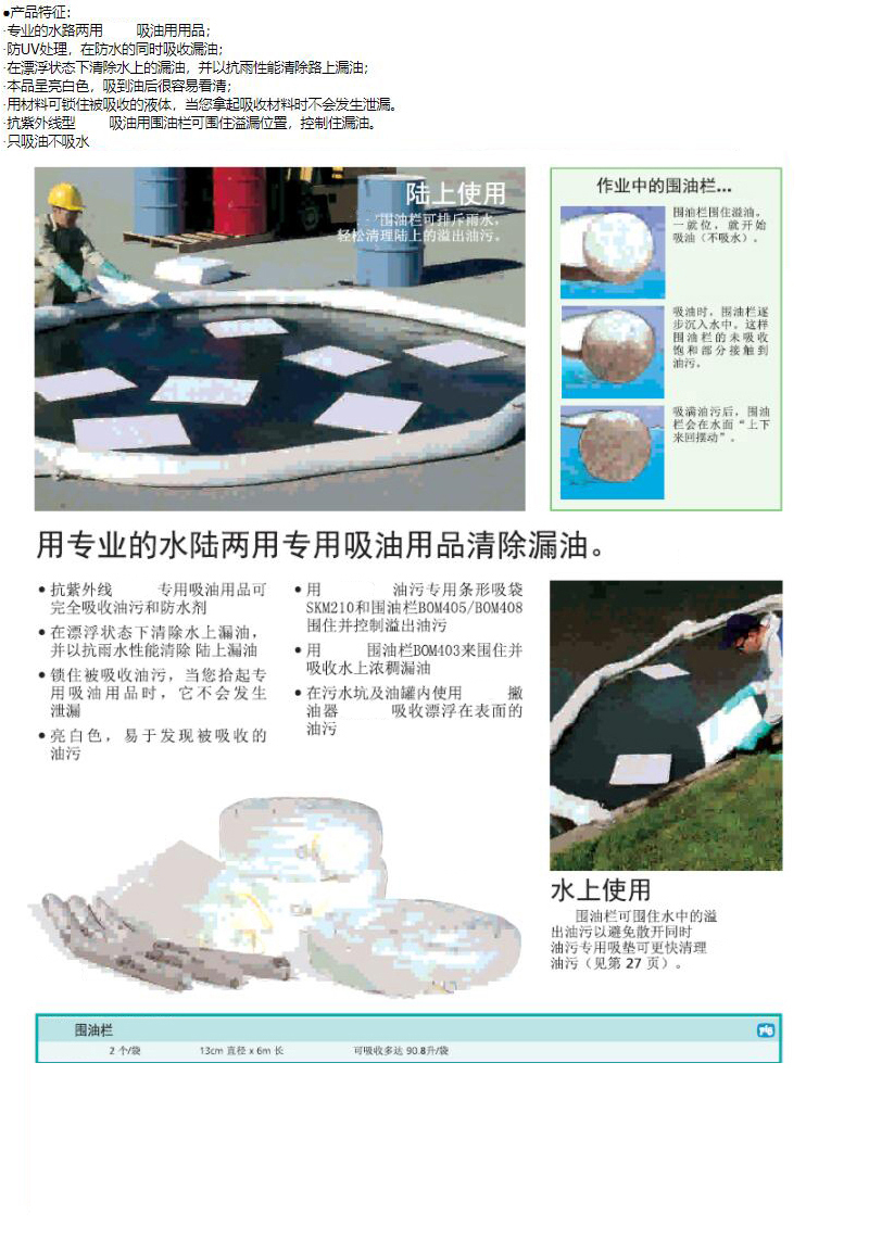 ·在漂浮状态下清除水上的漏油,并以抗雨性能清除路上漏油;