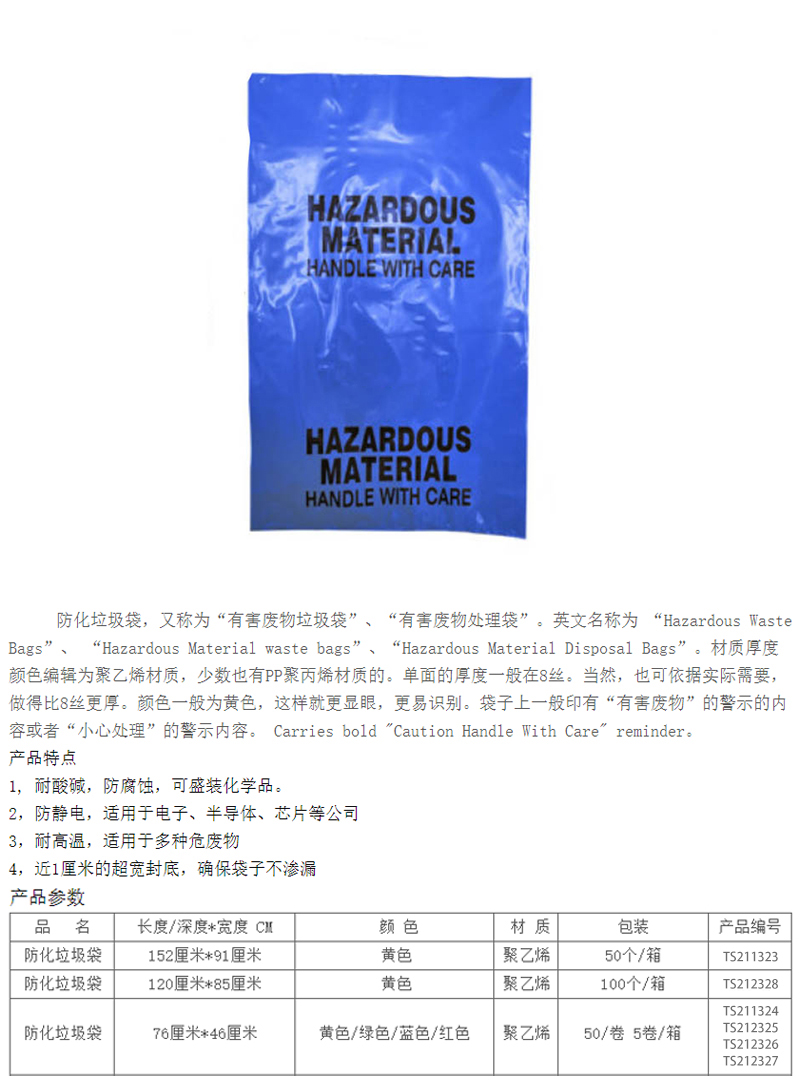 当前位置:首页 > 安防 > 化学品泄漏防护 > 防溢漏产品 > 废物处理袋