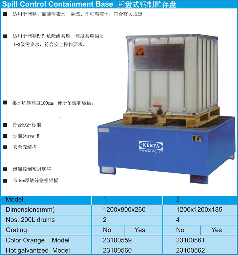 23100559 KT23-100-559 适用于储存和填充污水,易燃和不易燃液体,符合相关规定 1200×800×260mm 200L 8487.20