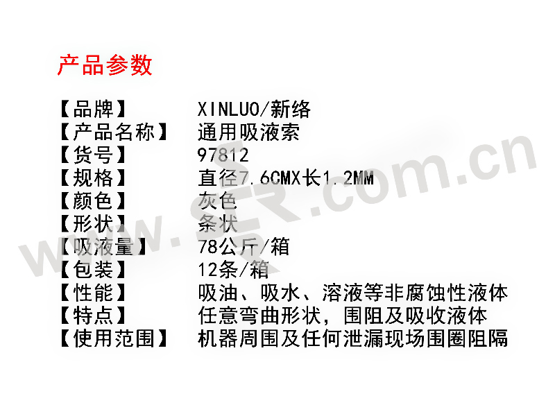 XINLUO/新络 通用型吸液索 97812 灰色 12条 1箱