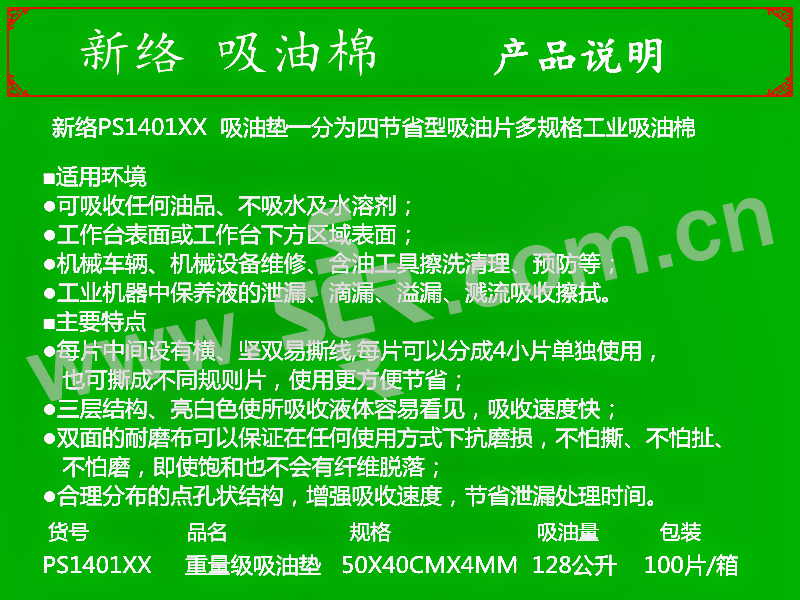 XINLUO/新络 重量级双撕线节省型吸油垫 PS1401XX 白色 100片 1箱