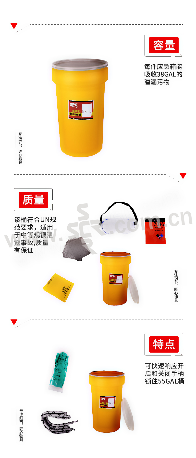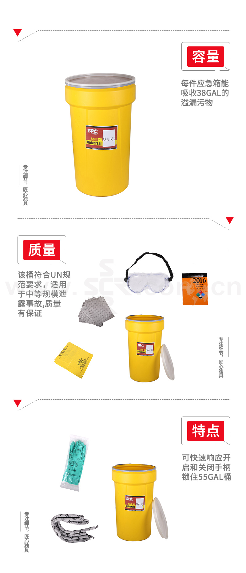 ·每个套件最多能吸收143L溢漏
