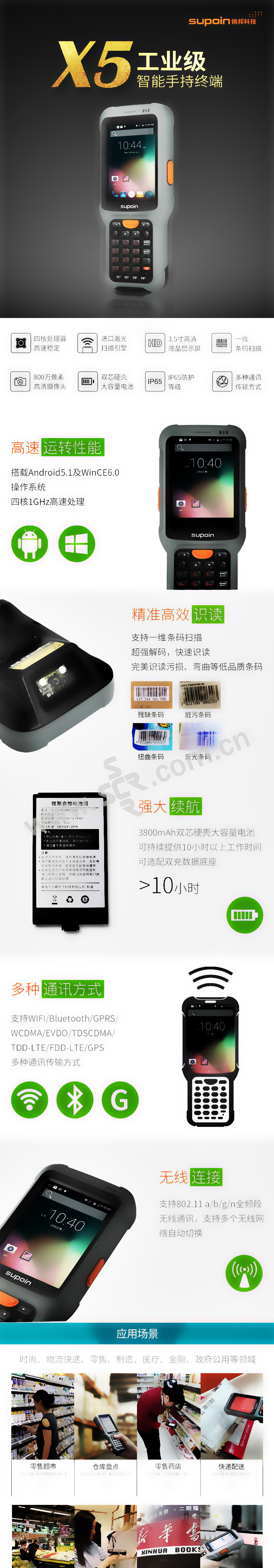 ·SUPOIN销邦,X5305LT3手持终端PDA移动智能终端盘点机数据采集器一维