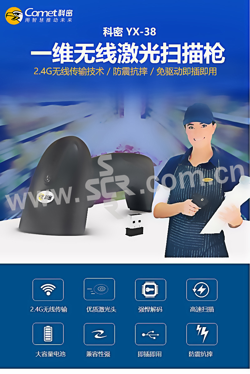 COMET/科密 扫描枪 YX-38+ 纸质 薄膜类 一维码 1台