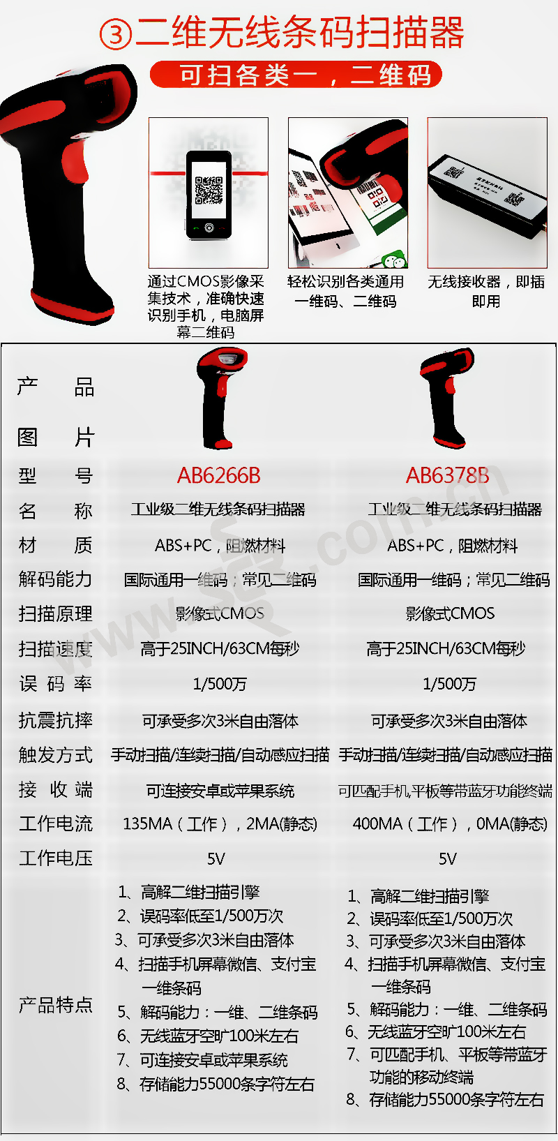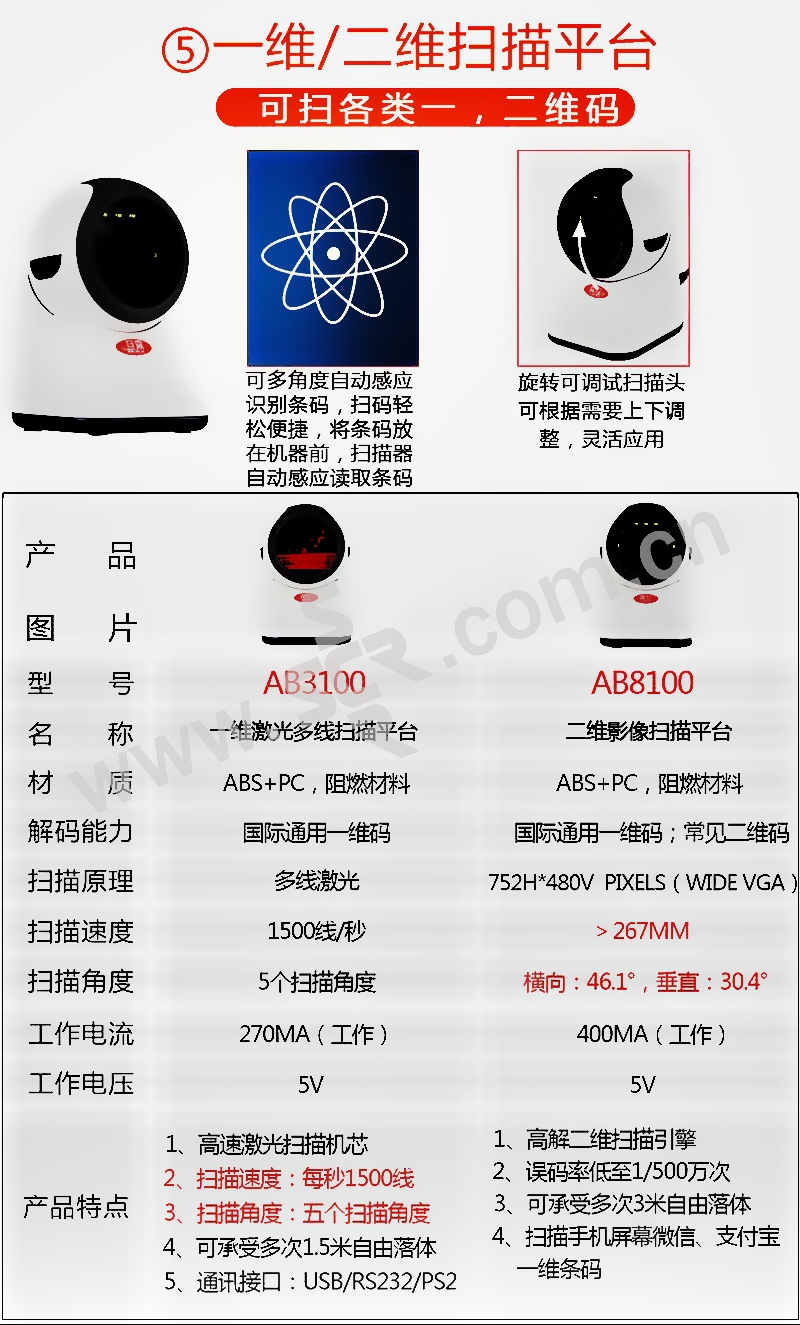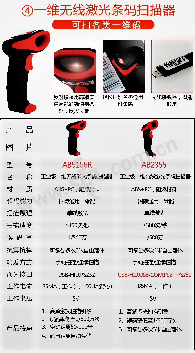 ·进口芯片/即插即用/自动扫描/高速解码/防摔设计/按键5千万次测试