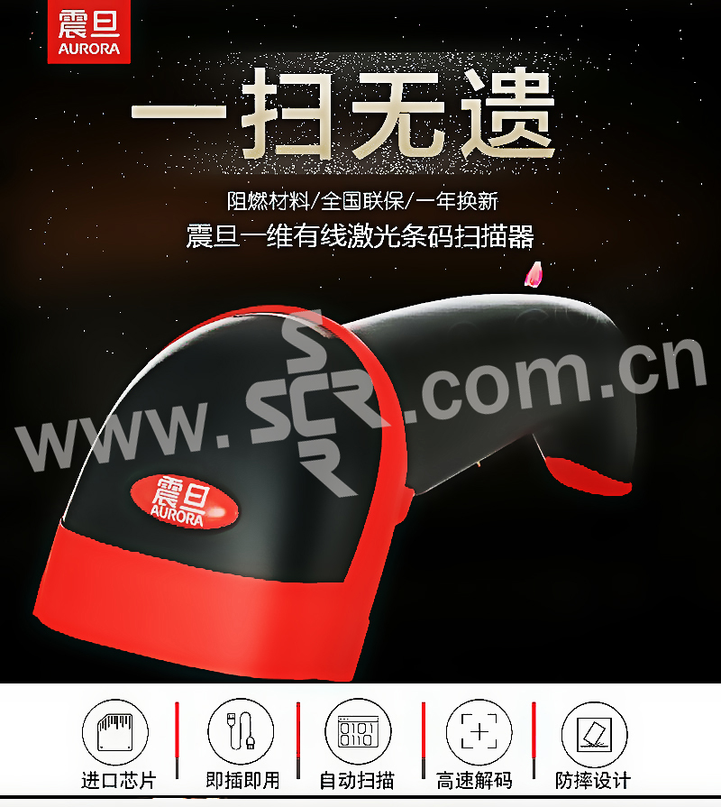 AURORA/震旦 工业级一维高解有线激光条码扫描枪 AB2155 国际通用一维码 1把