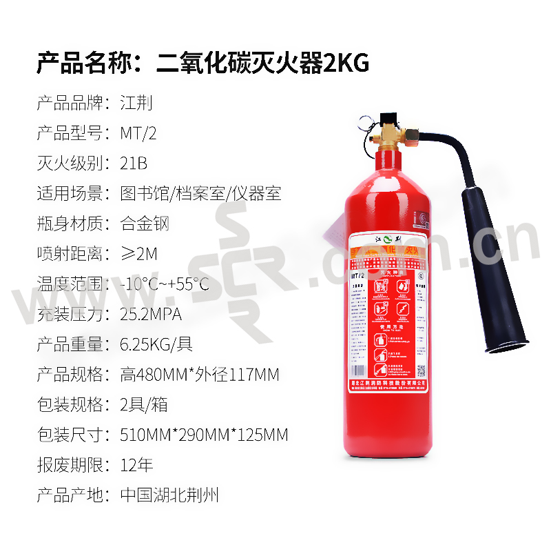 JIANGJING/江荆 手提式二氧化碳灭火器 MT/2 灭火剂含量2kg 1个