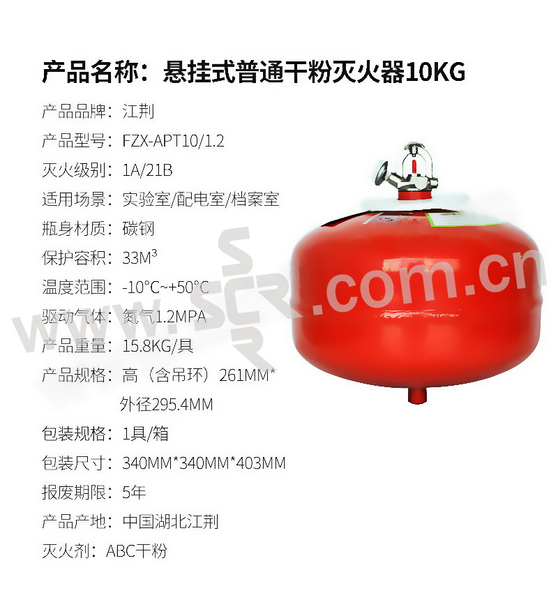 JIANGJING/江荆 悬挂干粉灭火器 FZX-APT10/1.2 灭火剂含量10kg 1个