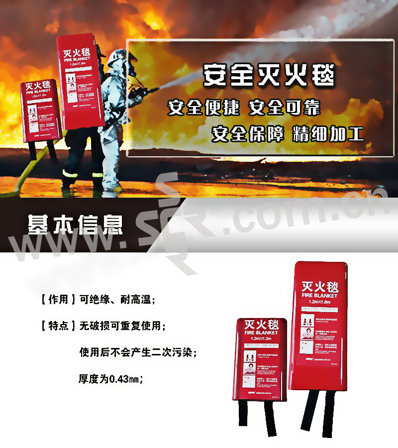 SAFEWARE/安赛瑞 灭火毯 20393 玻璃纤维材料 厚0.43mm 1.2*1.2m 红色 1个