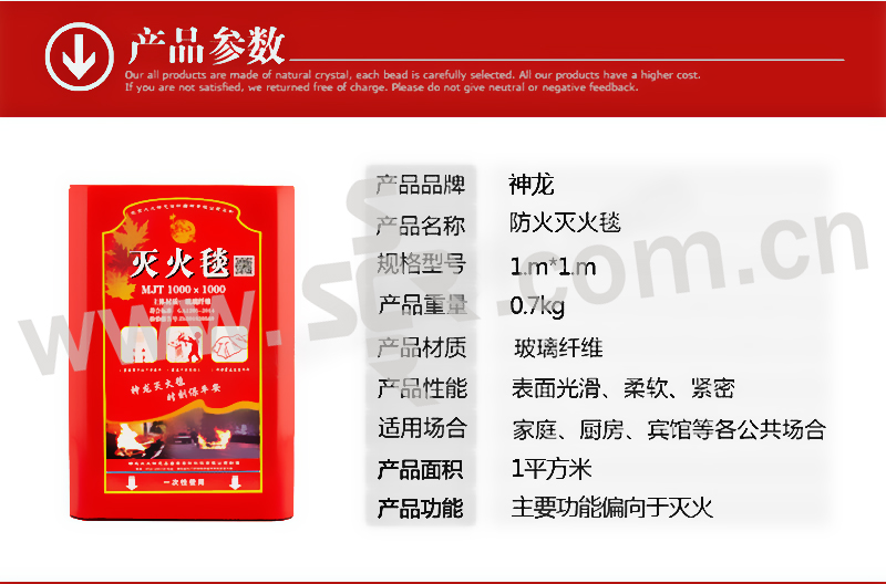 SHENLONG/神龙 玻璃纤维应急灭火毯 1×1m 白色 1块