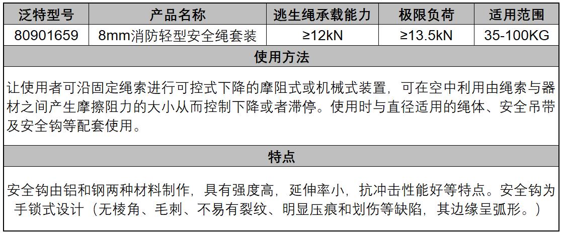 8mm消防轻型安全绳套装