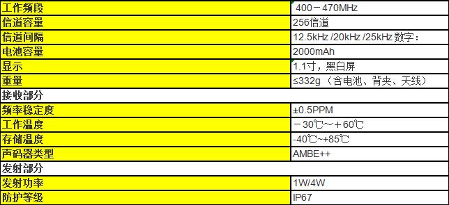 ·OLED显示屏;直通双时隙技术;虚拟集群(选配);高精度GPS/BD定位(选配);注册,漫游,倒放等高端功能(选配);录音功能(选配)专业的外观设计配合OLED显示屏;直通双时隙,容纳更多组别通讯;支持注册,漫游,GPS定位,倒放报警,虚拟集群等高端应用功能;模拟+数字双模制式,支持自适应数/模混合通讯;支持对讲机检测,摇毙(解码),摇晕(解码)激活(解码)单远程监听(解码)和单独工作等远程调度管理功能;语音加密及色码鉴定功能;支持多模式联动报警,支持倒放报警(倒放报警需定制);采用有级音量开关,支持较