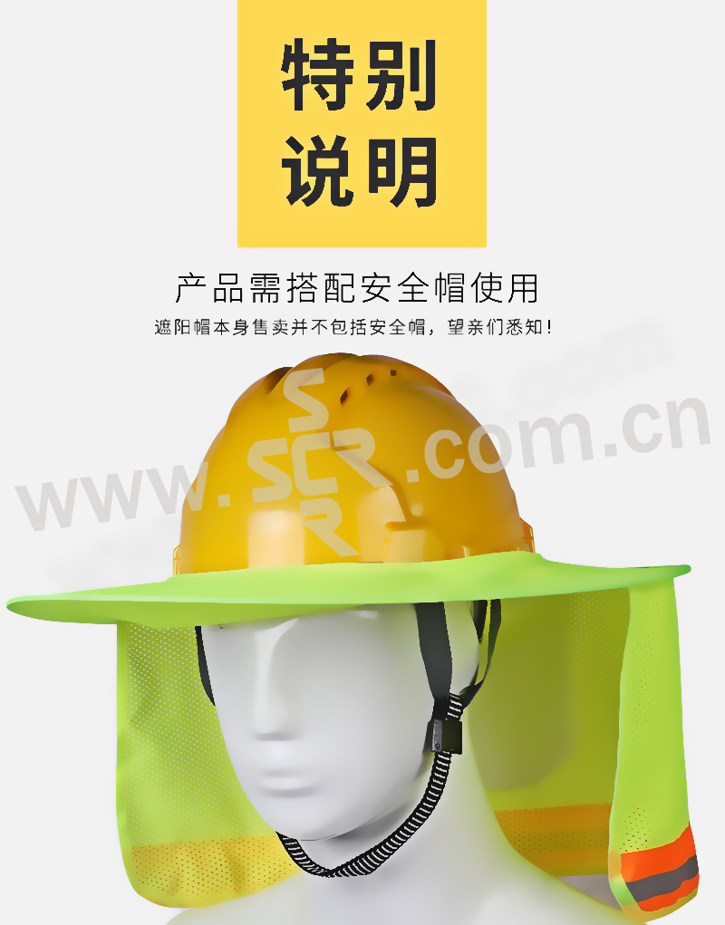 ABS/安博世 安全防护遮阳帽 QT-ZYM01 适配安全帽 均码 荧光黄 1个