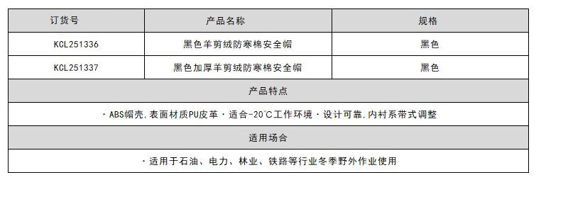 ·ABS帽壳,表面材质PU皮革 ·适合-20℃工作环境 ·设计可靠,内衬系带式调整