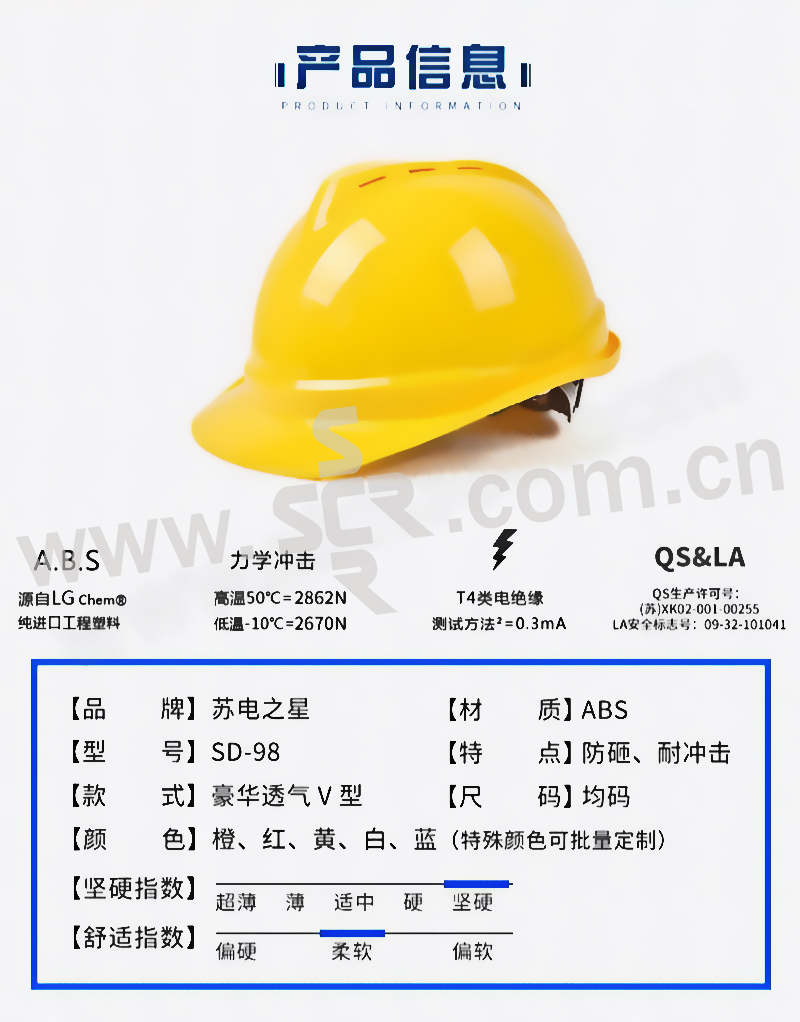 SDZX/苏电之星 豪华V型ABS安全帽 SD-98 红色 一锁键帽衬 PVC吸汗带 Y型下颌带 带透气孔 1个