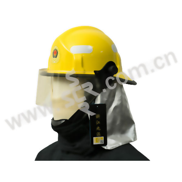 ·符合GA44-2015《消防头盔》的标准,有国家消防装备质量监督检验中心检验报告和产品3C认证书·黄色外翻半盔式头盔,由帽壳、缓冲层、网状舒适层、 佩戴装置、面罩、披肩等组成,采用橡胶内嵌金属包边,可安装照明灯·优质的冲击吸收性能和抗冲击加速度性能