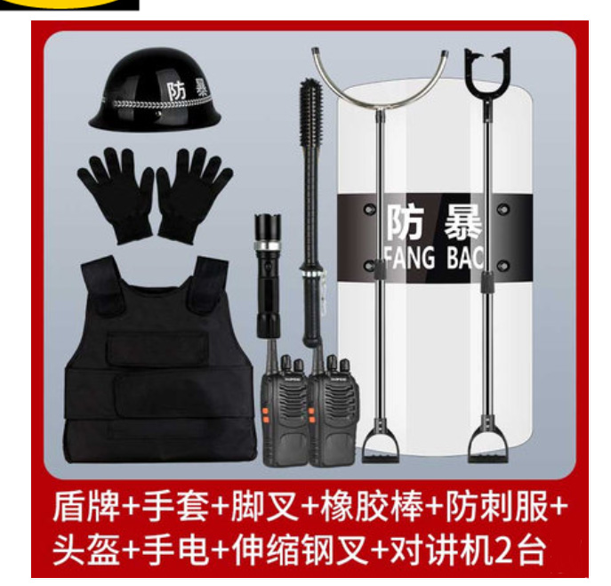 盾牌+手套+脚叉+橡胶棒+防刺服+头盔+手电+伸缩钢叉(经典8件套)
