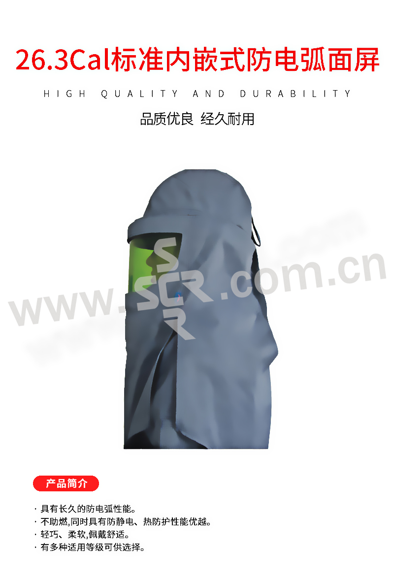 · 防电弧头罩采用阻燃面料与聚碳酸酯面屏加工而成。 · 该面罩具有防雾气,防冲刺,阻燃耐高温,可达到230℃左右。 · 抗静电,充分地结合了人体生理结构加工制造,穿戴舒适,可以达到防护电弧的有效功能。 · 适用于电力,工业,化工等相关电力工作的需要。 · 有多种适用等级可供选择。