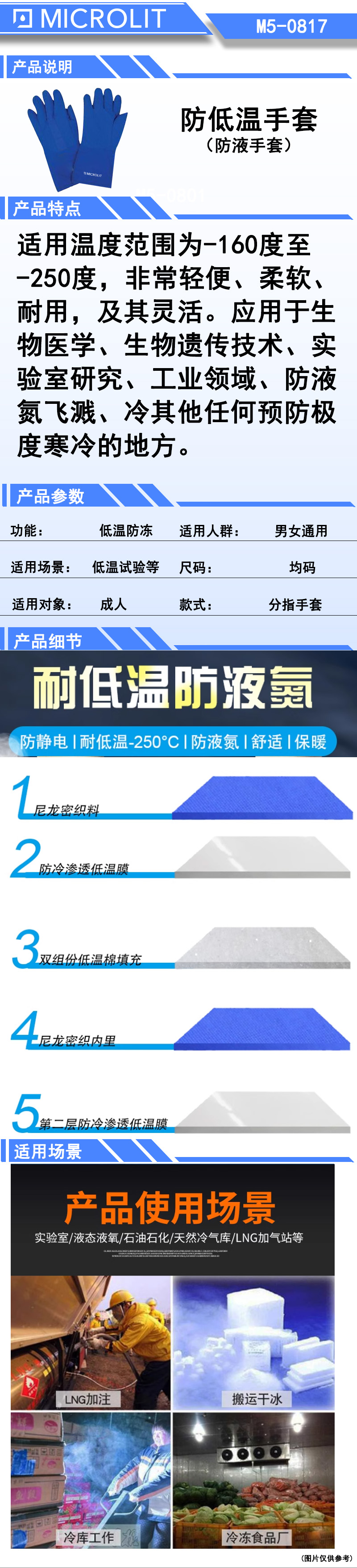 应用于生物医学、生物遗传技术、实验室研究、工业领域、防液氮飞溅、冷冻食品加工、低温研磨和其他任何预防极度寒冷的地方。