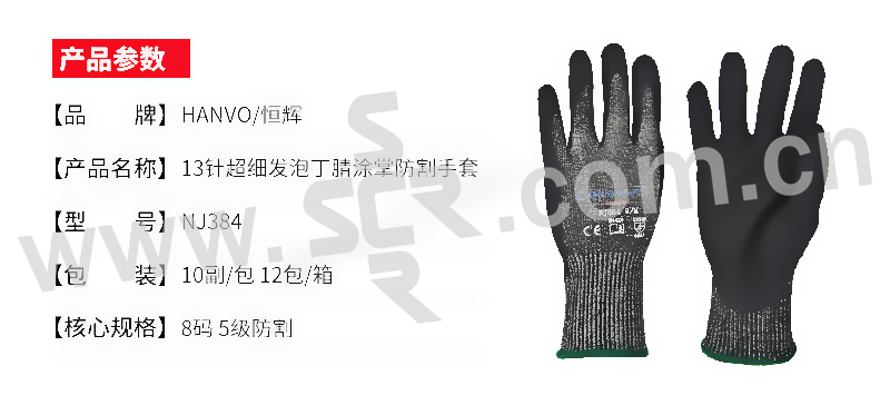 HANVO/恒辉 13针超细发泡丁腈涂掌防割手套 NJ384 8码 5级防割 1副
