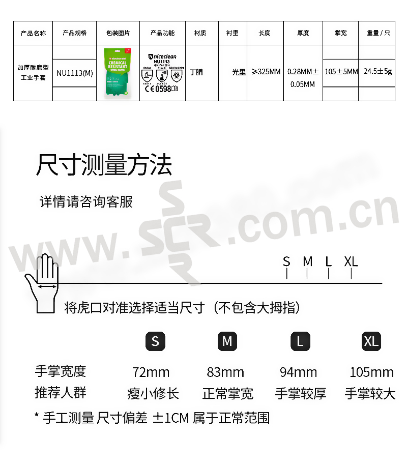 NICECLEAN/好清 耐酸碱丁腈手套 NU1113 M 49±5g 光里 1双